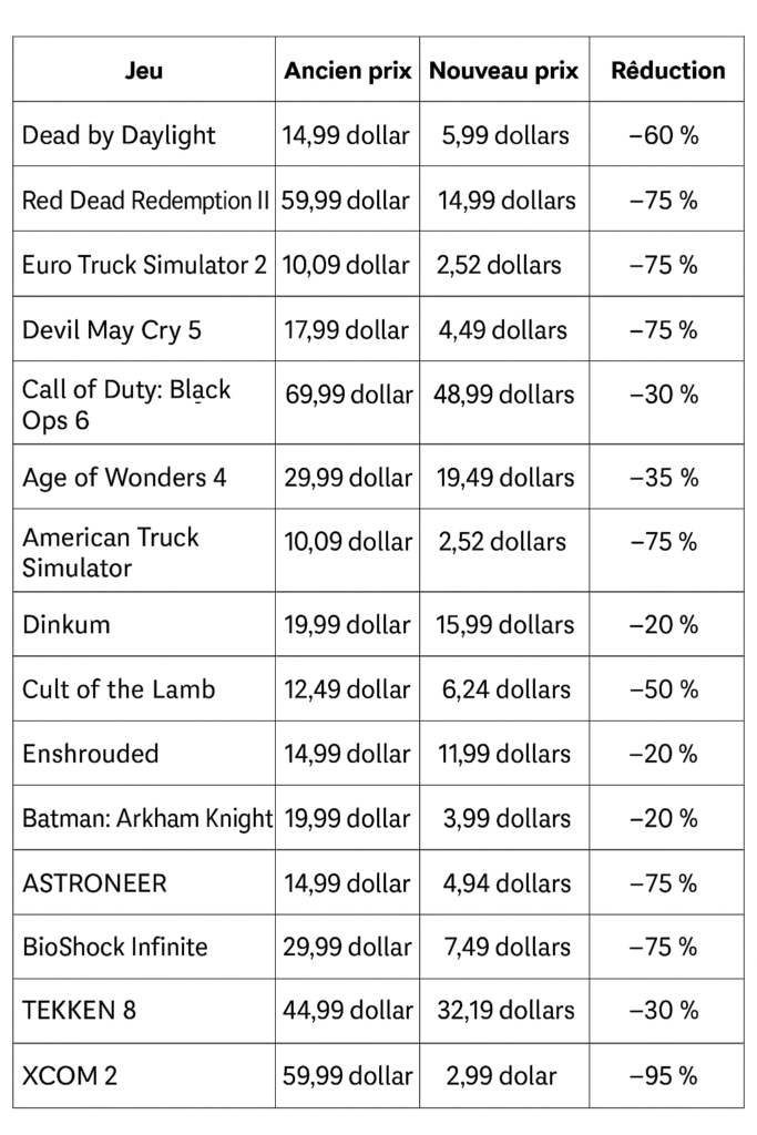 Grande réduction sur Steam : Réductions allant jusqu’à 95 % sur des jeux populaires